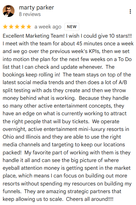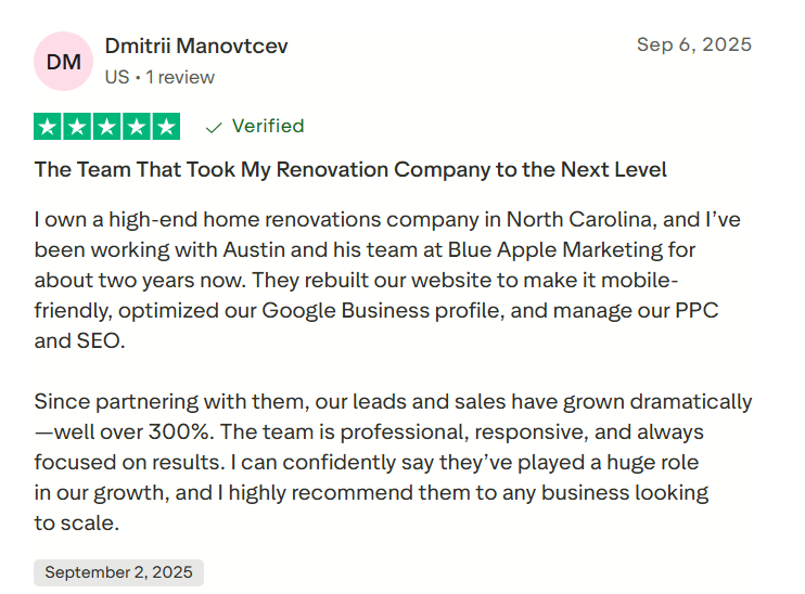 Client Results Discover how we help our clients achieve success. Explore our strategies, stories, and real-world results that showcase the impact we make together. Google & Trustpilot Reviews Success Stories Feeback Videos 4 Videos One By One Fitness Reporting & Stats 4:48 Jason Feedback - R12 Fitness 1:12 Blue Apple Marketing Results! 1:12 Massive Boost in Med Spa Appointments 0:57 Feedback Photos